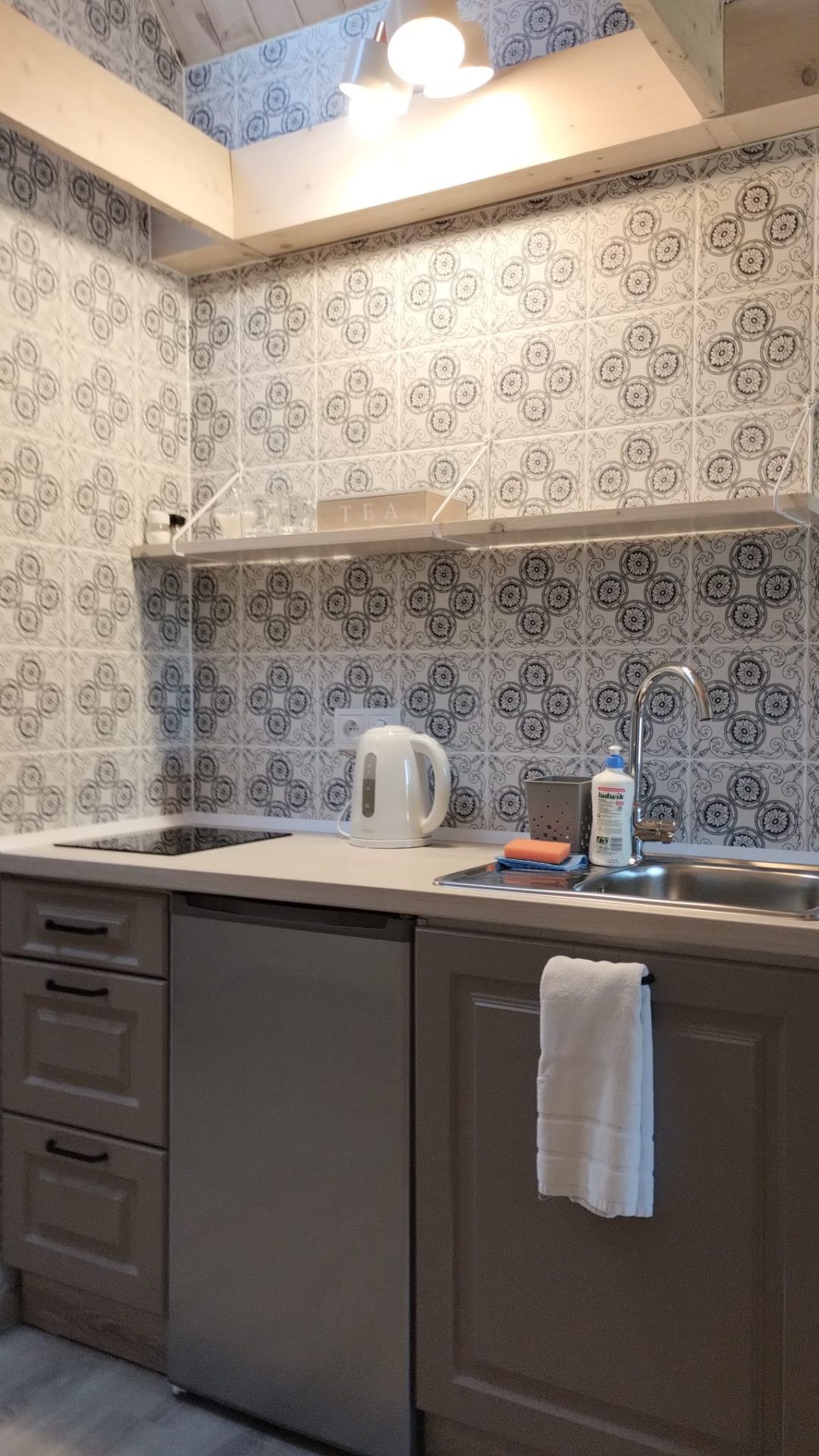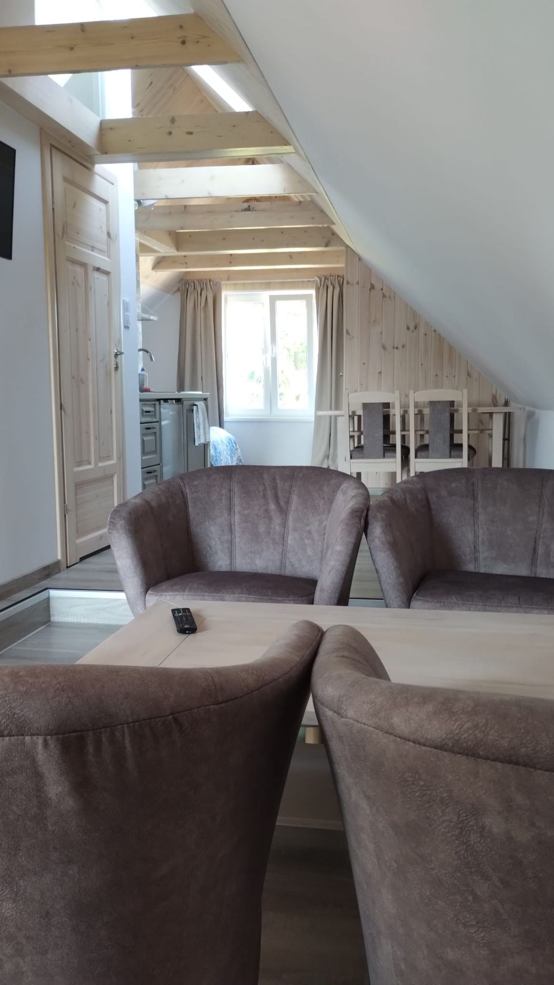 Zaadaptowane poddasze, duża otwarta przestrzeń z wydzieloną łazienką i aneksem kuchennym. Miejsce dla wygodnego pobytu do czterech osób. Na wyposażeniu telewizor.